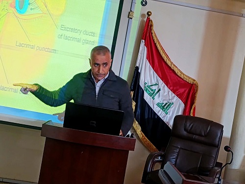 قدم الدورة المدرس الدكتور أزل حمودي جمعة، حيث قام بعرض تحليلي معمق لاستراتيجيات توصيل الدواء، مؤكداً على ” تخصيص المسار العلاجي ” وفقاً للتركيب التشريحي المعقد للعين وطبيعة كل مرض.
